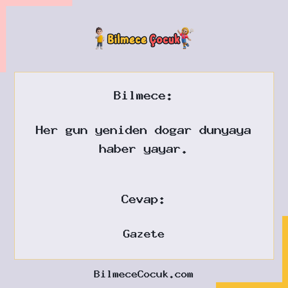 Bilmece Çocuk - Çocuk Bilmeceleri - Her gün yeniden doğar dünyaya haber yayar.