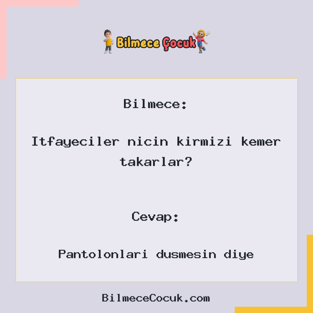 Bilmece Çocuk - Komik Bilmeceler - İtfayeciler niçin kırmızı kemer takarlar?