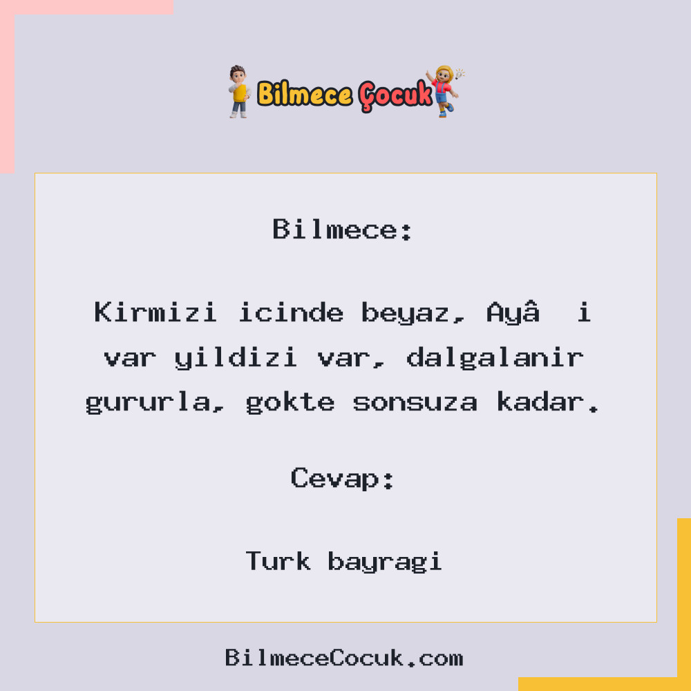 Bilmece Çocuk - Manili Bilmeceler - Kırmızı içinde beyaz, Ay’ı var yıldızı var, dalgalanır gururla, gökte sonsuza kadar.