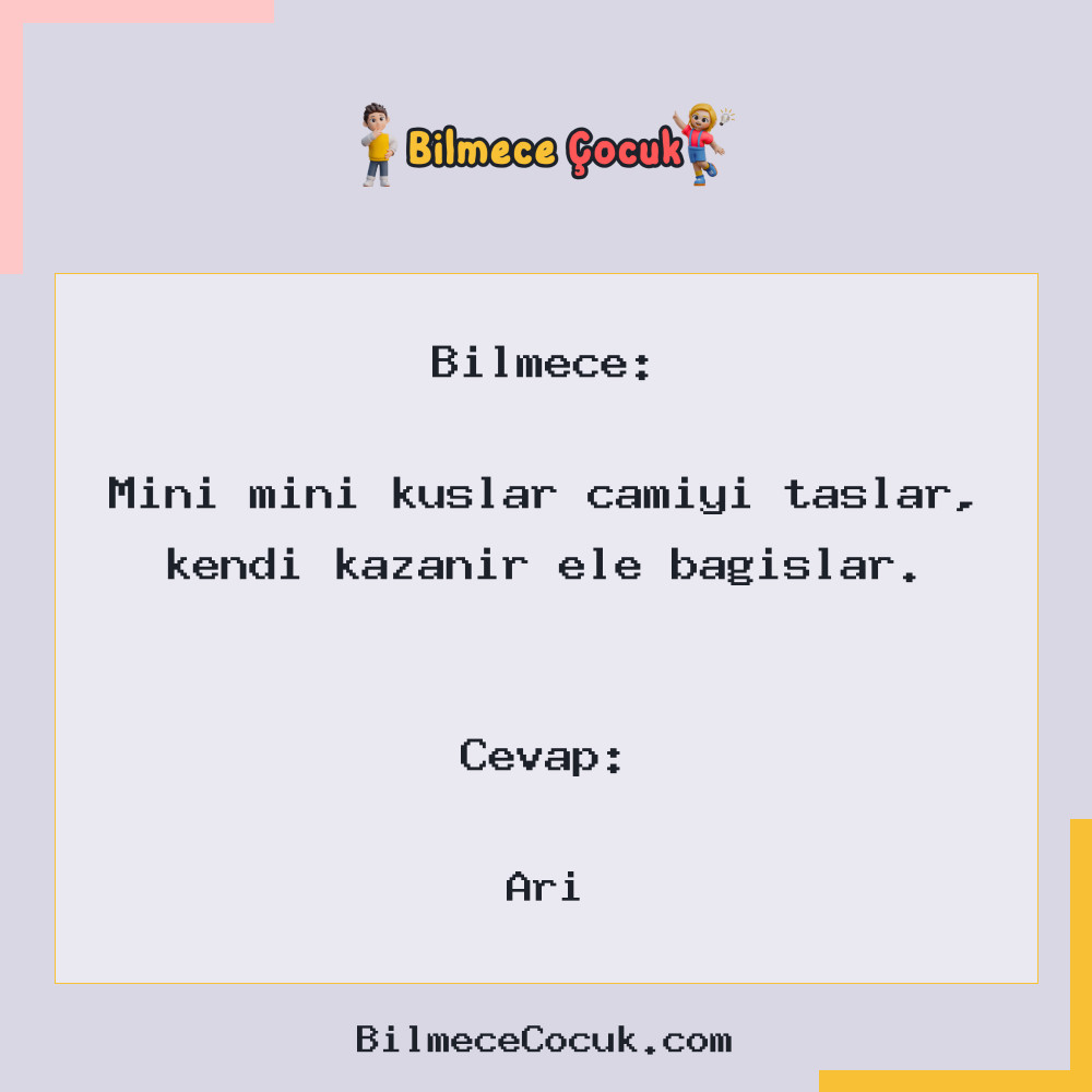 Bilmece Çocuk - Çocuk Bilmeceleri - Mini mini kuşlar camiyi taşlar, kendi kazanır ele bağışlar.